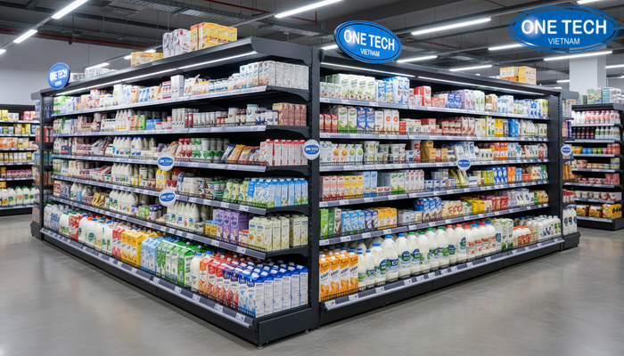 Giới thiệu dịch vụ cung cấp kệ trưng bày sữa giá rẻ, uy tín từ Kệ siêu thị An Giang – OneTech Group